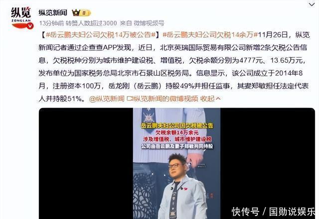 “小岳岳”人设还在台上抖包袱,台下他老婆郑敏却被扒出公司欠税,热搜一挂就是两天——同一时间段,于谦的公司干净得像新洗的碗。都是德云社台柱子,都是年入上亿,怎么一个被税单追着跑,一个连罚款单都没见过?我第一反应:这差别,真不是运气,是家风。先说岳云鹏。他出名后给五个姐姐买房、给老家修路,感动得一票网友热泪盈眶。可感动归感动,钱从哪儿来、怎么交税,没人替他算。郑敏名下那家公司,注册地在北京朝阳,主营业务写着“文化艺术交流”,实则是走穴、商演、综艺的钱先过一道水。税管得松的年份,这么干能省一大笔;风头一紧,旧账全翻出来,滞纳金+罚款,一夜回到解放前。你以为明星会计都是傻子?不是,是他们真觉得“能拖就拖”是行业潜规则。